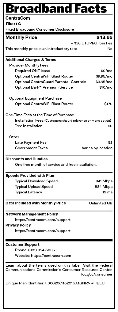• CentraCom Fiber Available through Lehi City Network